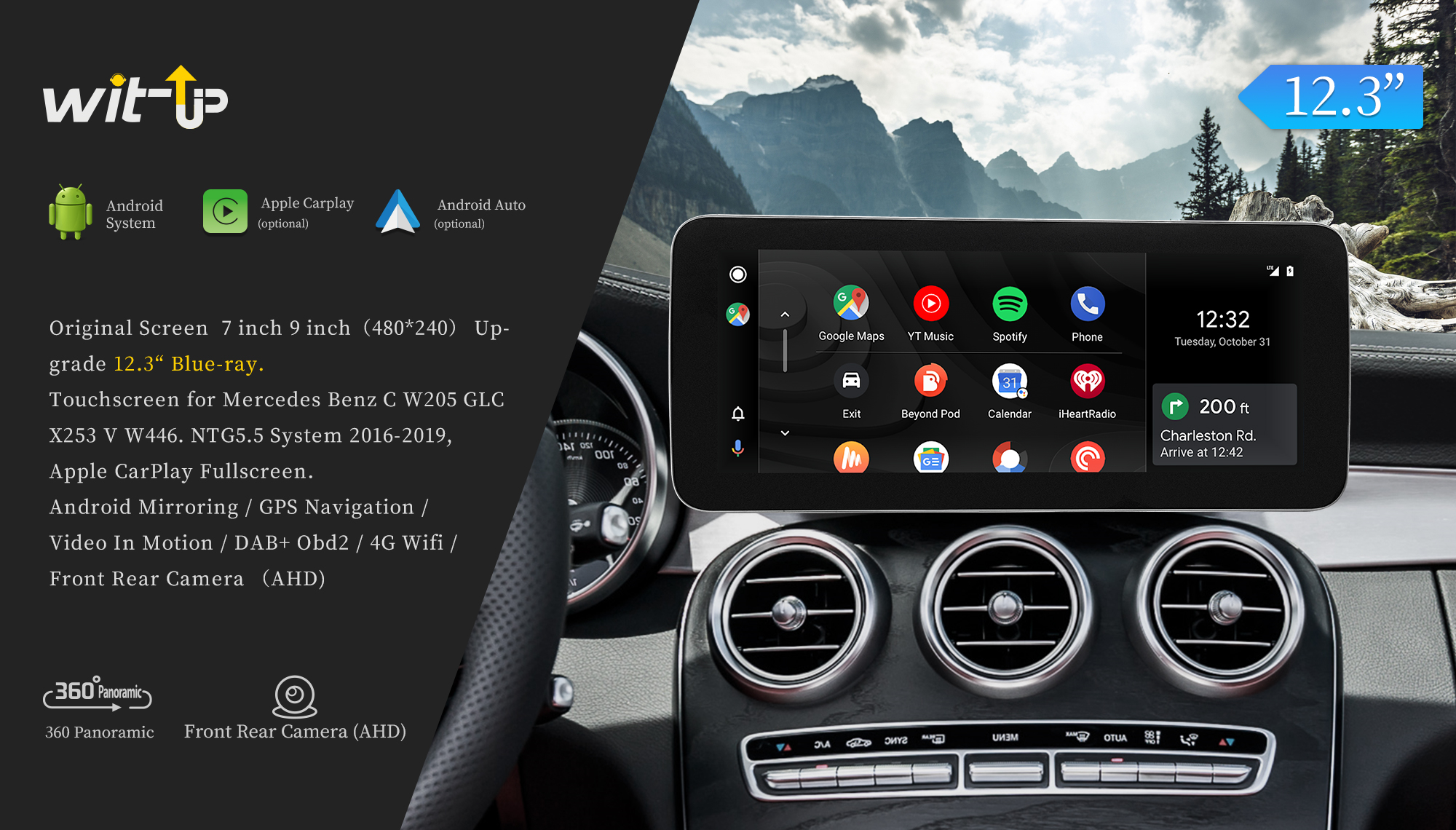 Wit-Up 8.8" Touchscreen GPS Navi Autoradio Stereo Wireless Carplay For Mercedes Benz C W204 2011-2014 Youtube Apply Carplay AirPlay Mirroring Wired Android
