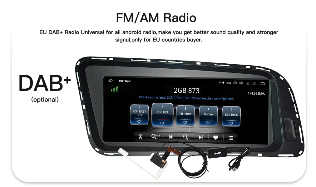5, amplificador de fibra óptica/DAB +/TV digital/escáner obd2/caja de conversión de Audio USB (opcional)