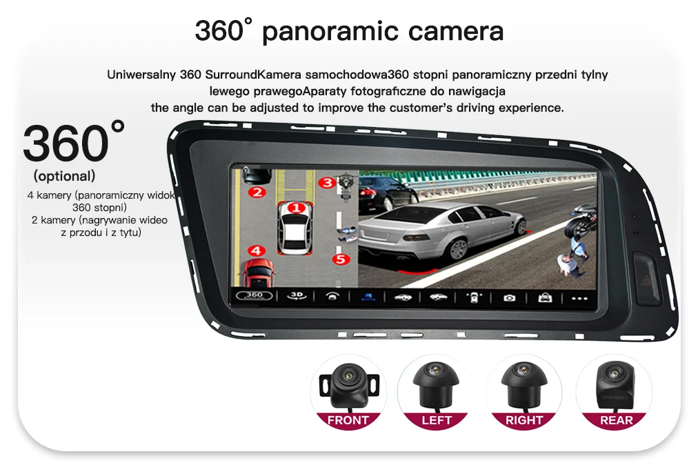 4, cámara AHD delantera y trasera/cámara para salpicadero de coche (opcional)