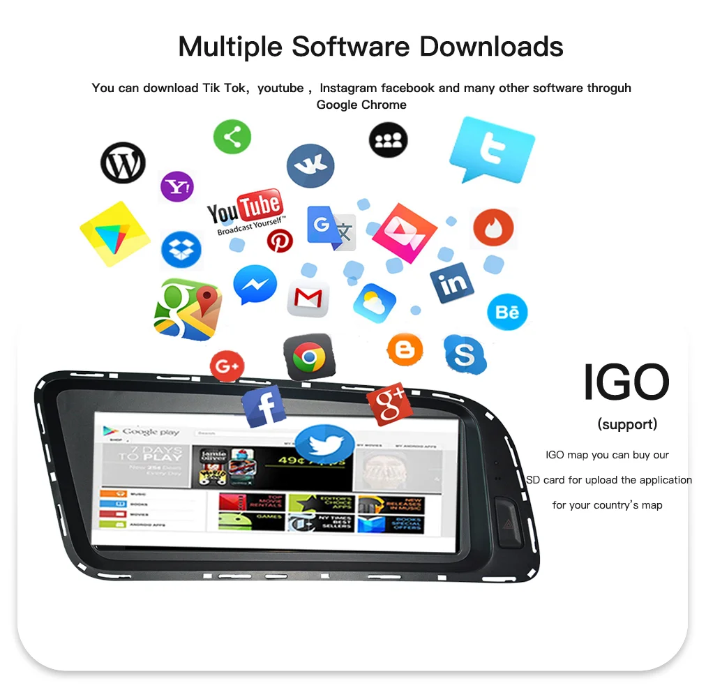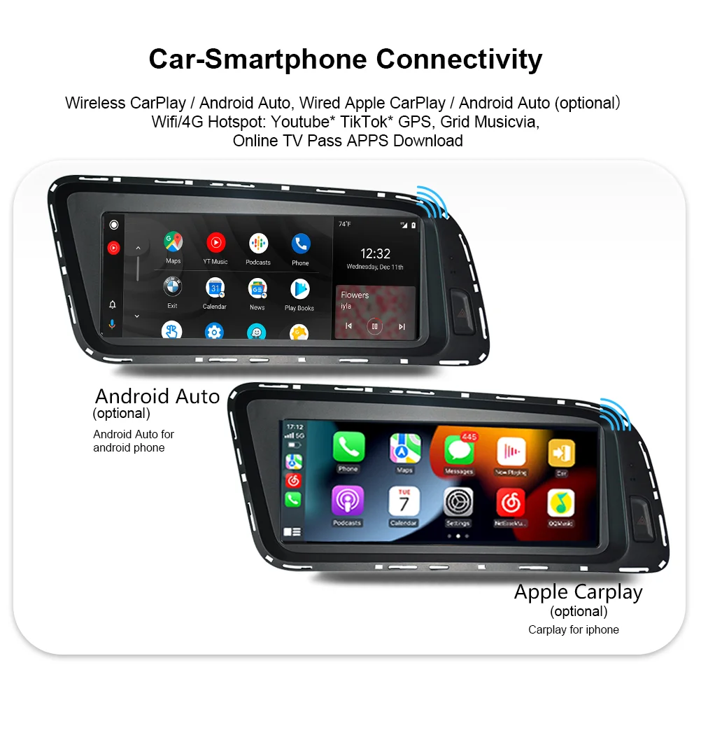 wit-up 8.8 "Pantalla táctil Android GPS navi autorradio estéreo carplay para Audi Q5 (2009-2015) MMI 2G MMI 3G Youtube Aplicar Carplay AirPlay Mirroring Wifi Bluetooth