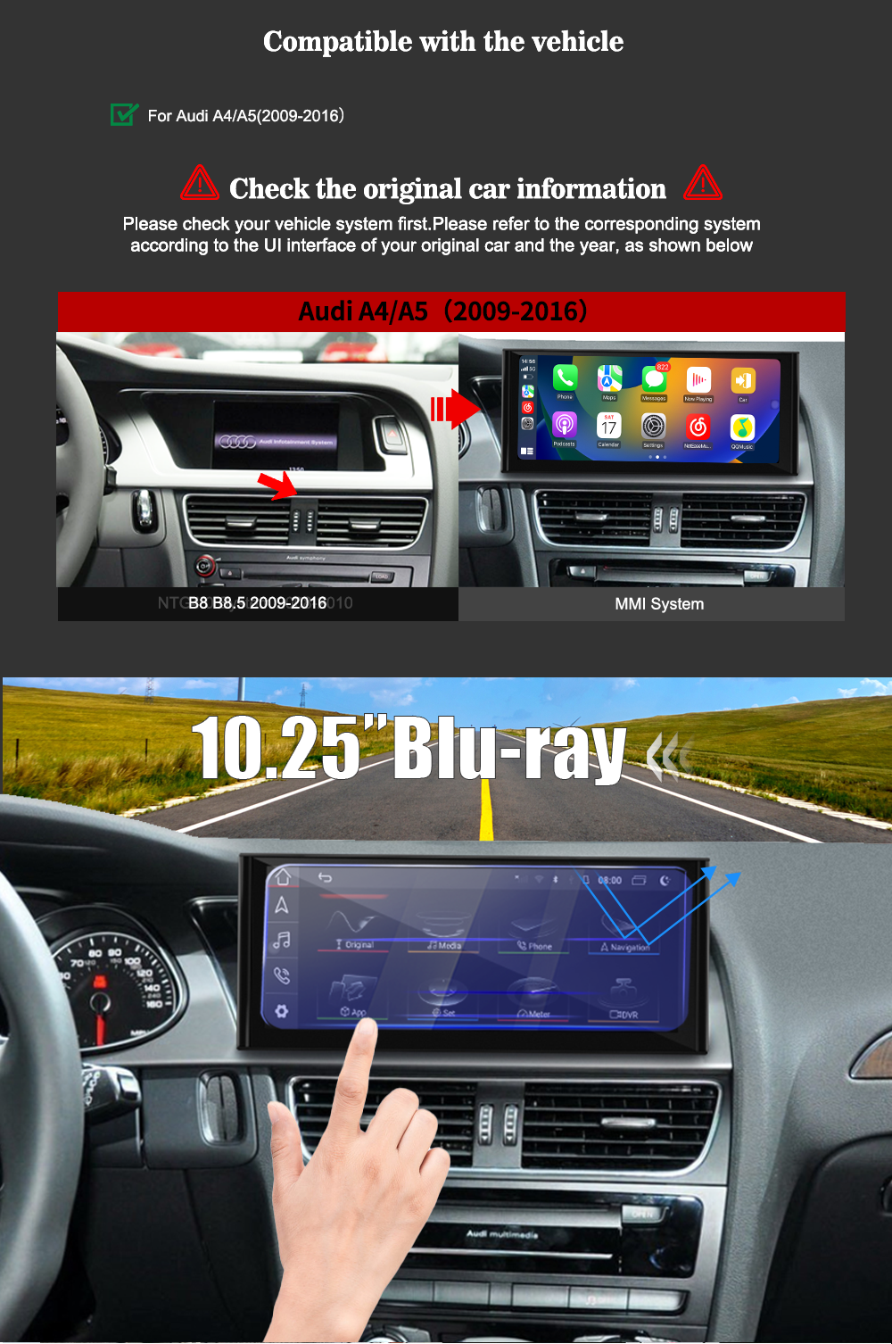 Android 14 car multimedia DVD stereo radio video player GPS GLONASS navigation CarPlay for Audi A4/A5(2009-2017)2 DIN 8V