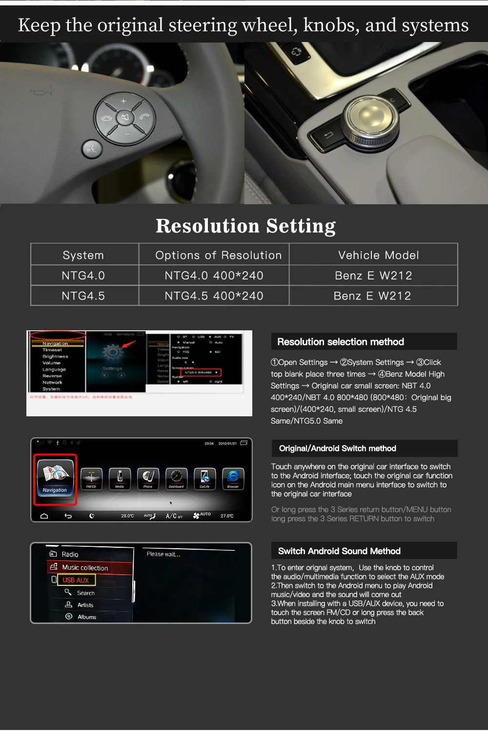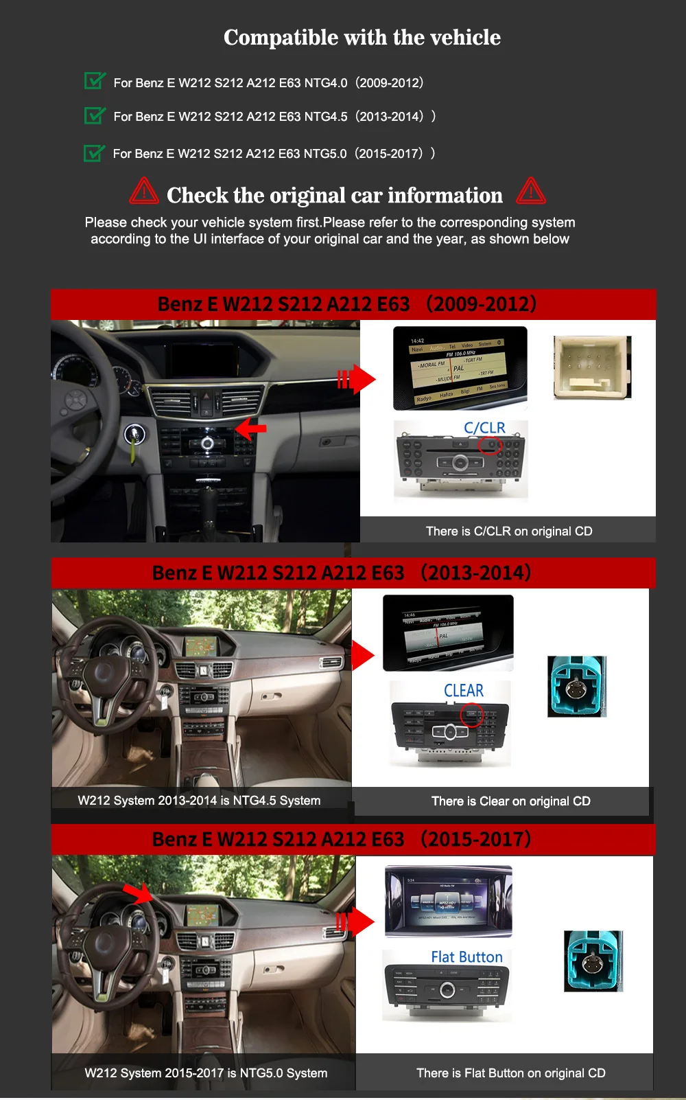 For Mercedes Benz E W212 A212 S212 2009-2017 car stereo